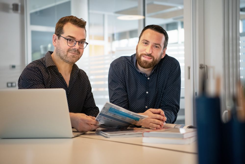 Jobst von Heintze (Leiter Marketing und Vertrieb – links im Bild) und David Lange (Produktmanager Quam – rechts im Bild) verstärken ab sofort die Lintra plus GmbH