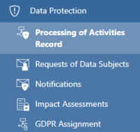 Integration of the previously external DSGVO module via an extended data model and the provision of standard content for the DSGVO, such as contents of the ordinance or the processing directory. This allows users to enter personal data and assign it to processes and processing systems, display it and evaluate it if required.