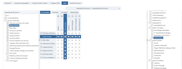 Even easier, faster and more functional linking of organizational elements via the new Any-Relation-Matrix (XRM) by e.g. fixed table headers, drag-and-drop functionalities, additional icons, an improved search function and much more.