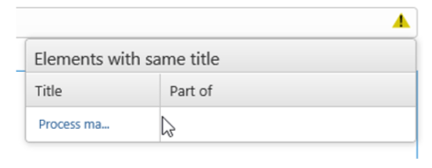 When you click on the warning sign, a context menu appears displaying all elements of the same content type and title. If the uniqueness is weak, it can be more than one object. Within the context menu you can check if the element you want to create already exists.
